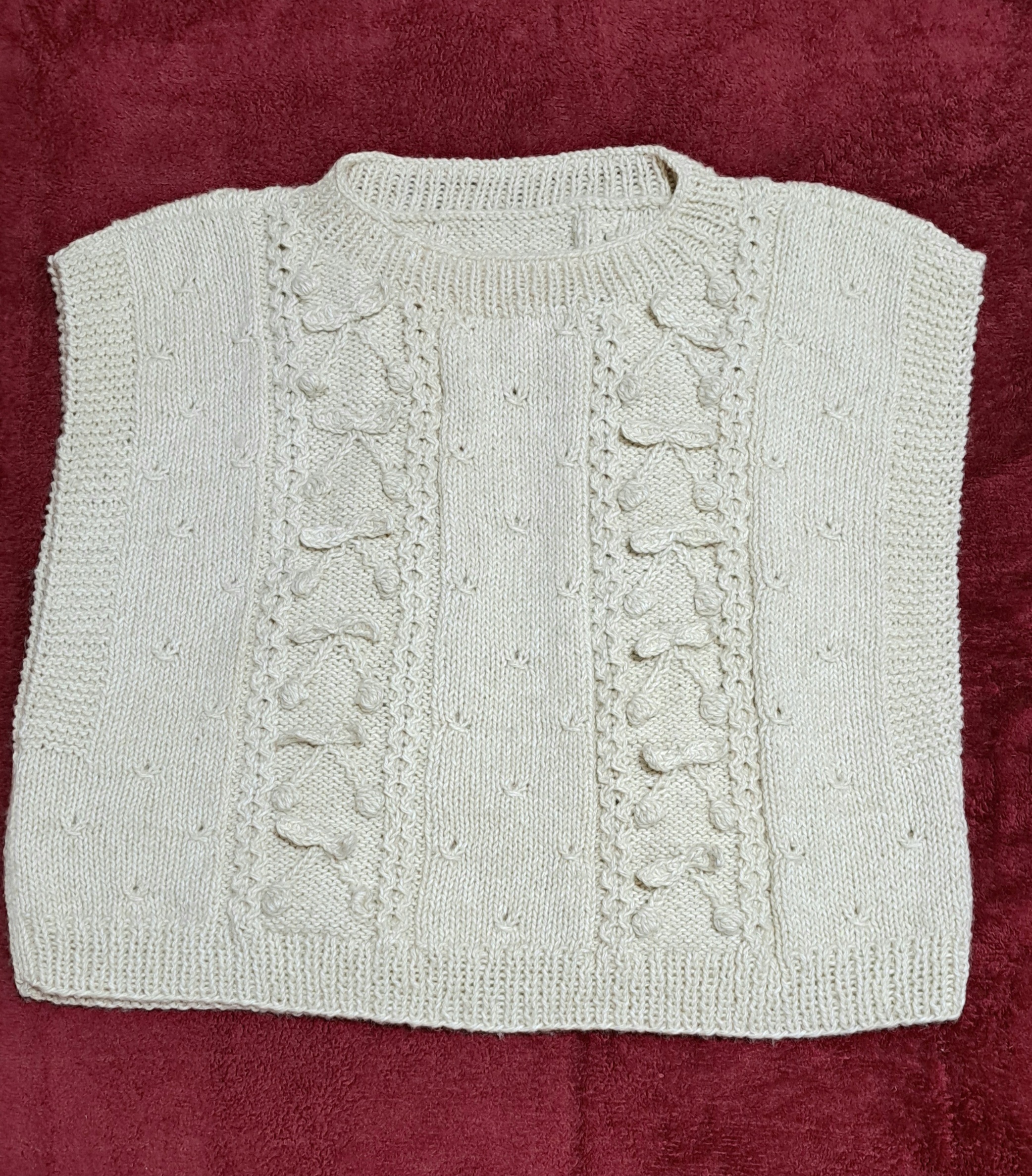 このベストはベリー模様に葉っぱを後付けで取り付けました。